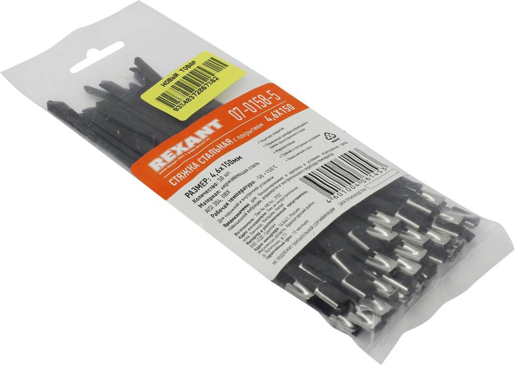 Стяжка стальная, неоткрыв. Rexant [07-0158-5] 4.6x150 мм, уп-ка 50 шт | |||
